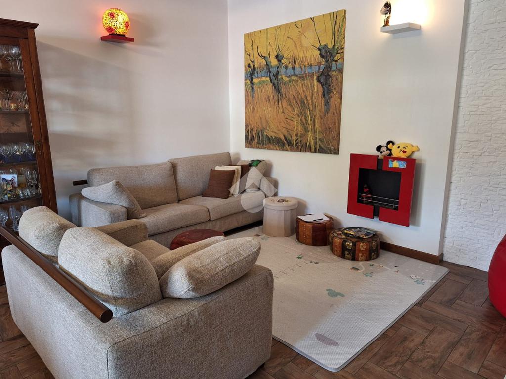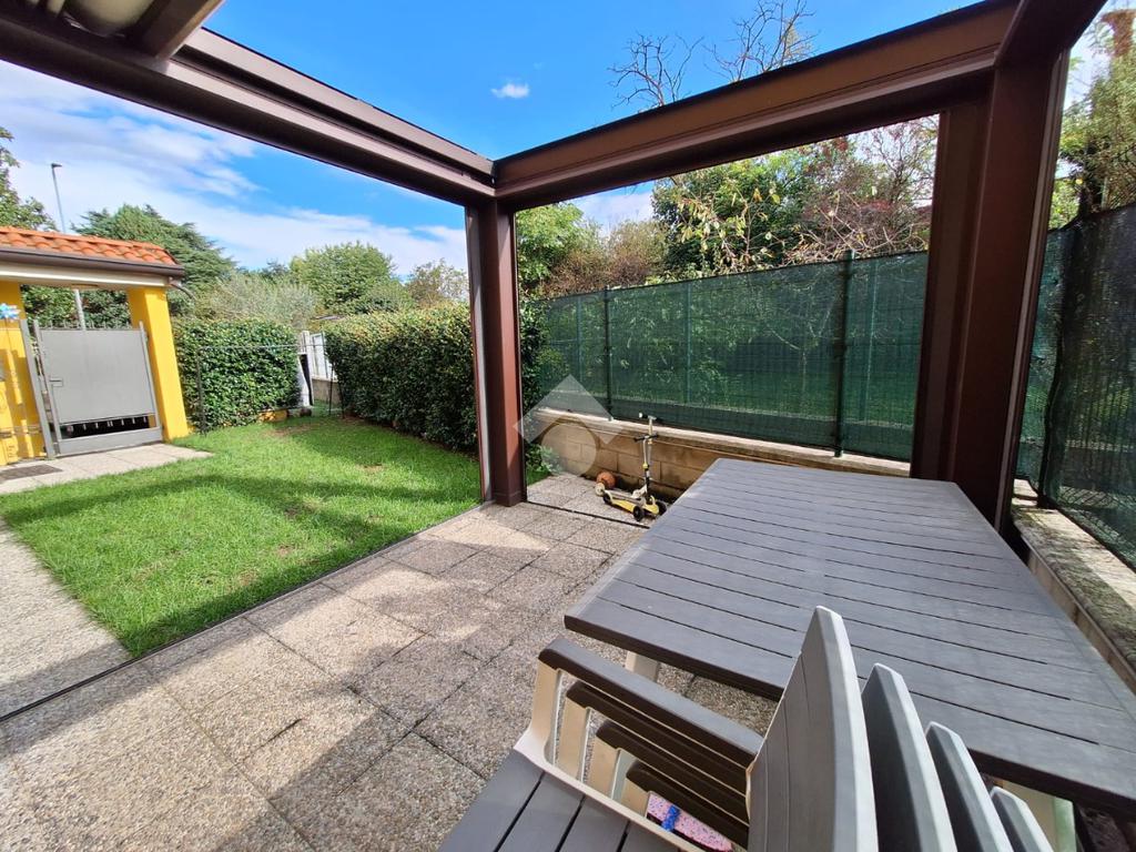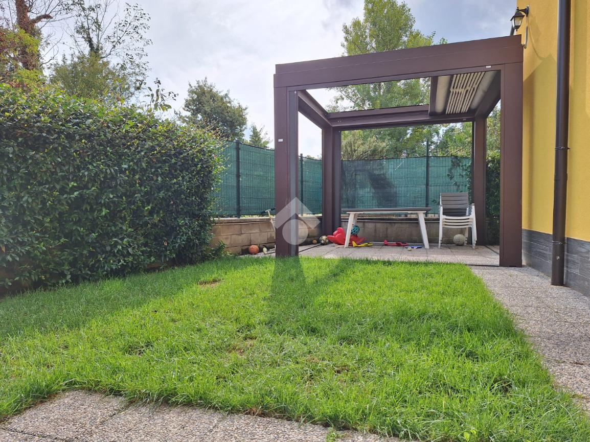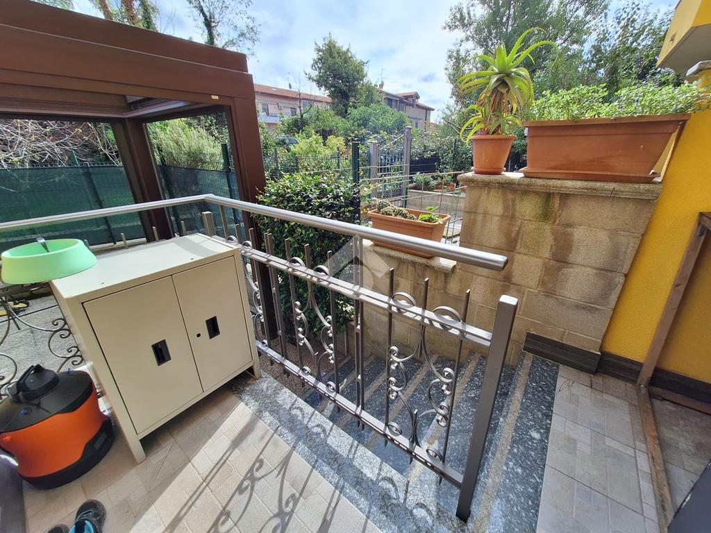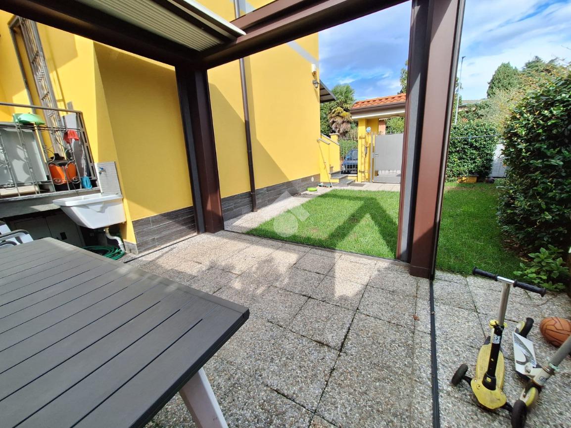 Posto al piano terreno, l'ingresso è in un comodo disimpegno che precede la zona giorno composta da un comodo salotto e dalla cucina abitabile. Da entrambi gli ambienti si accede al giardino di proprietà estremamente riservato e tranquillo.